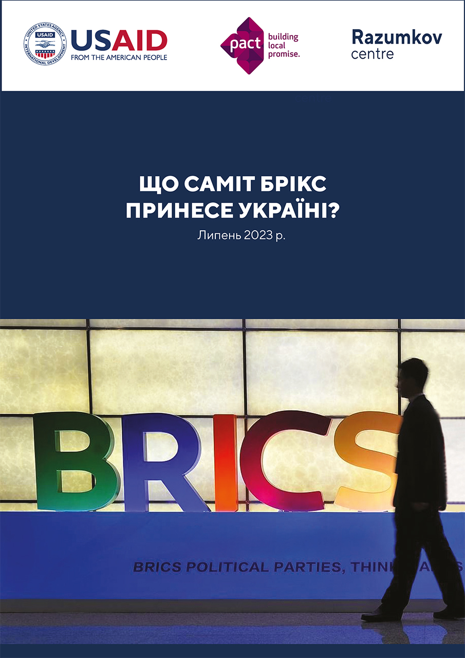 Одним з потенційно найвпливовіших альянсів, до складу якого належать великі висхідні країни, є БРІКС (Бразилія, росія, Індія, Китай, Південна Африка), саміт якого відбудеться наприкінці серпня 2023 р. Хоча дедалі більше проголошується декларацій про те, що він (саміт) буде спрямований на консолідацію позицій чинних членів альянсу, прийняття нових кандидатів, фінансове зміцнення учасників, однак водночас посилюються тривоги, що він характеризуватиметься загостренням суперечності між окремими учасниками і матиме далеко неоднозначні наслідки. І тим більше, не матиме вирішального позитивного впливу на боротьбу України проти російської агресії.