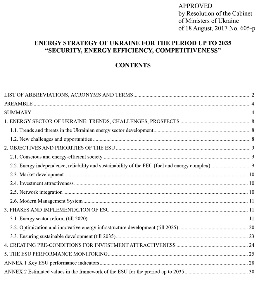 Energy strategy of Ukraine for the period up to 2035 “security, energy efficiency, competitiveness”